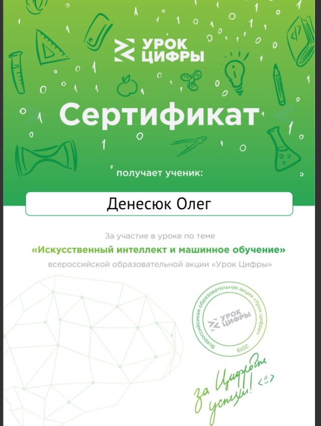 Урок цифры 2019 – искусственный интеллект и машинное обучение