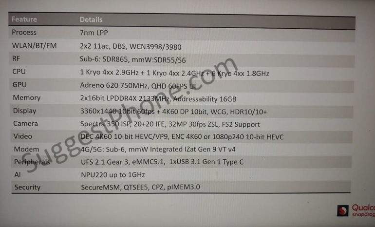 - Цифровой сигнальный процессор (DSP): Qualcomm Hexagon 688 DSP с 3-м поколением Qualcomm Hexagon Vector Extensions (HVX), Qualcomm All-Ways Aware technology;
