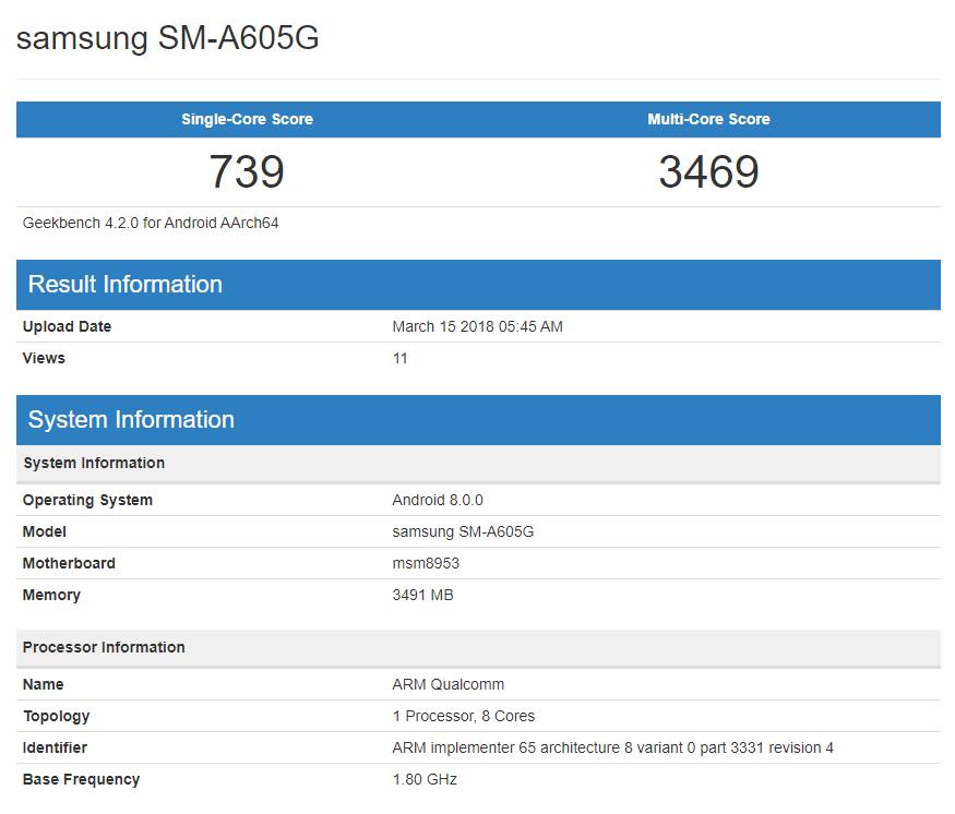 Итак, что мы имеем? В сеть просочилась информация касаемо среднебюджетных гаджетов Galaxy A6 и A6+, которые прошли тестирование в популярном бенчмарке GeekBench. Именно поэтому у нас имеются некоторые данные касаемо смартфонов, но отсутствует общая картина. Тем не менее нам известно главное - тип процессоров.